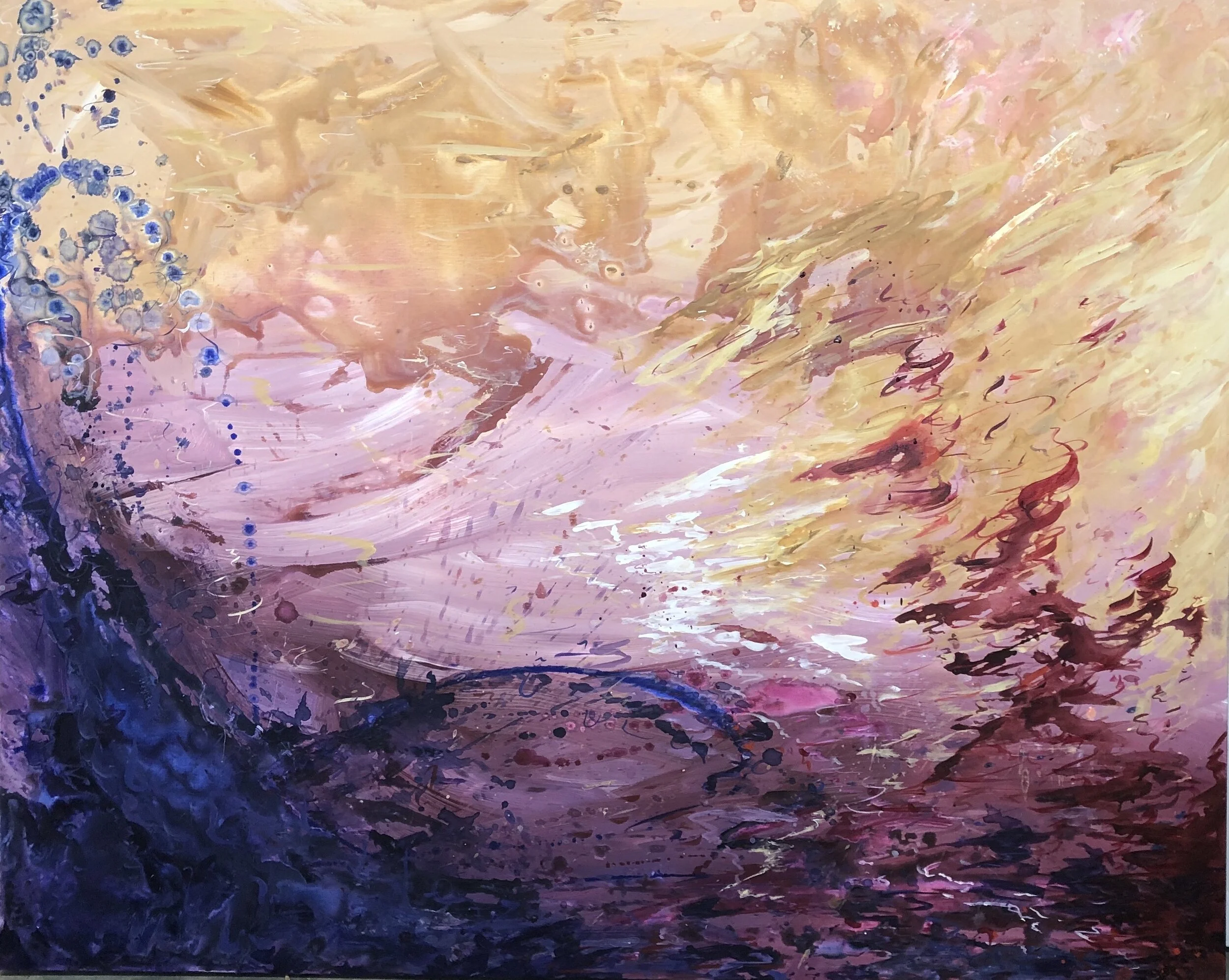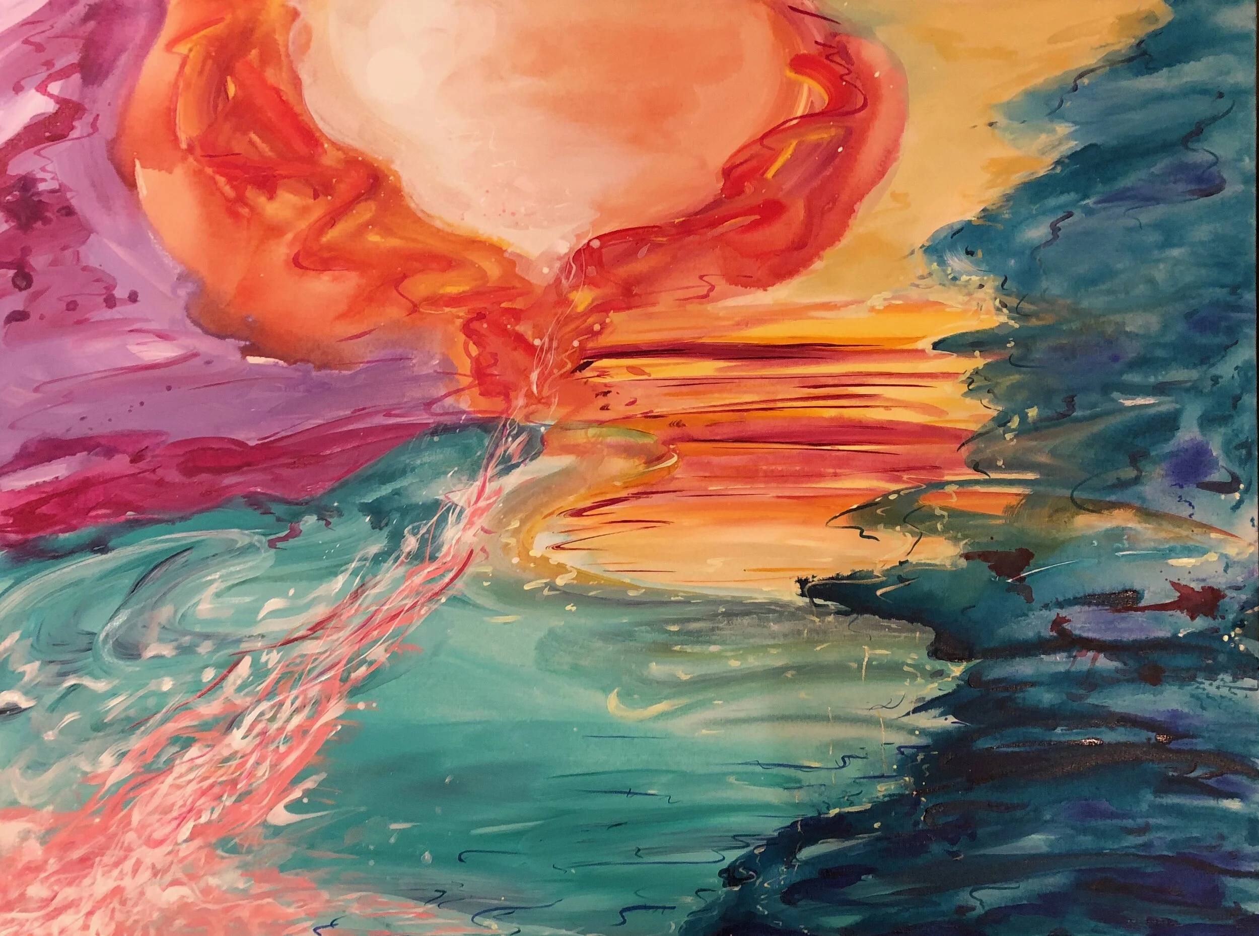 All of these pieces are the visual representation of a particular piece of music. The artist experiences a condition called synesthesia, which is a neural phenomenon in which when one sense is experienced another is triggered. For Maggie, this is a audio-visual link, meaning that when pieces of music are listened to, beautiful bodies of color appear before her eyes. She strives to share this beautiful reality with all through her work and hopes you enjoy.